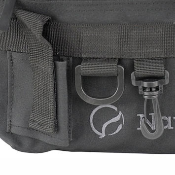 ペットボトルホルダー、ロッドホルダー、ペンチホルダーが標準装備されたショルダーバッグ。